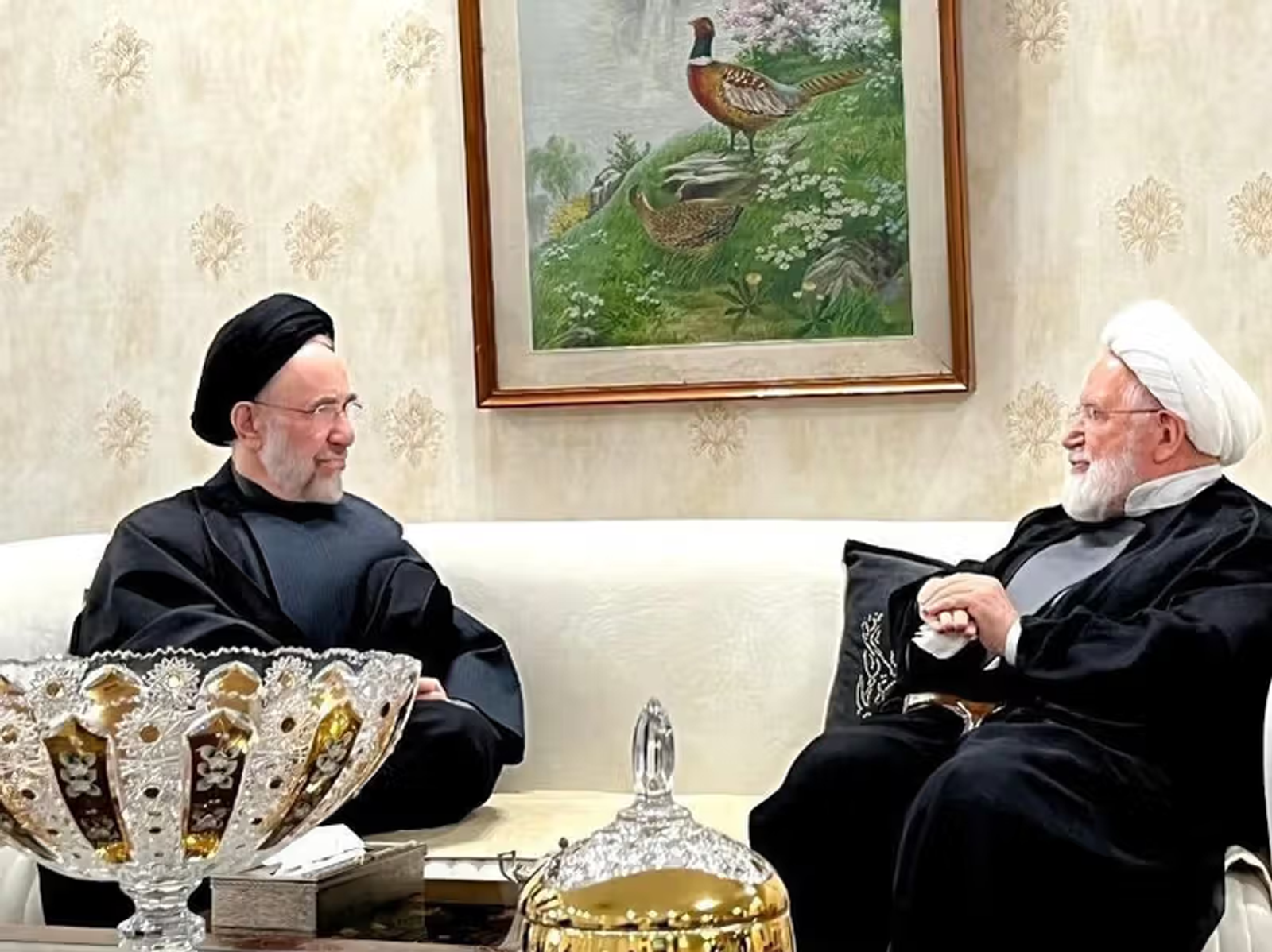 وبسایت انصافنیوز دوم فروردین با انتشار تصاویری خبر داد در پی لغو حصر خانگی کروبی، محمد خاتمی به دیدار او رفته است.