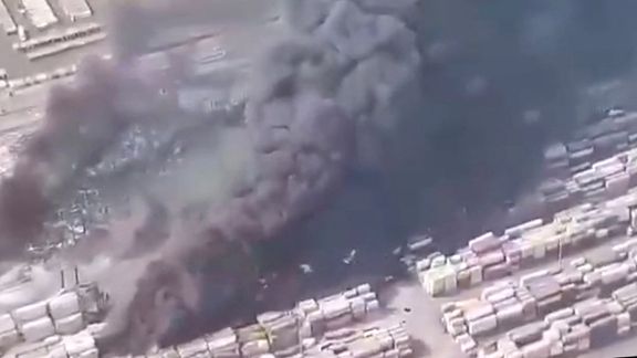 با ادامه آتشسوزی، تودهای گسترده از دود همچنان در آسمان بندرعباس در حال گسترش است.