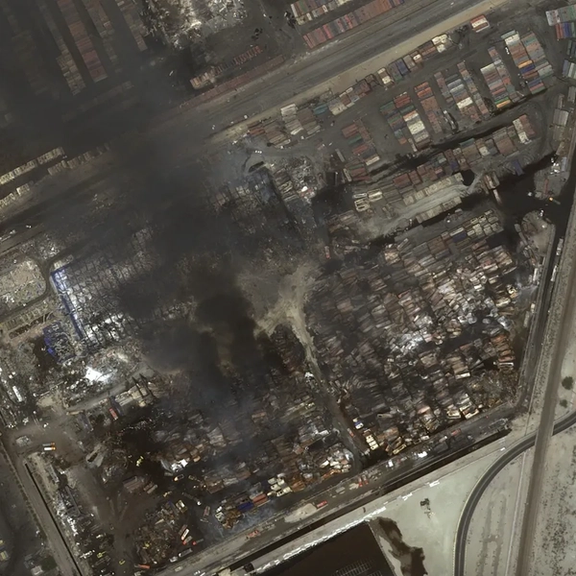 این تصاویر همچنین آشکار میسازد که با وجود گذشت چهار روز از انفجار، هنوز دود غلیظی در آسمان این محوطه دیده میشود.