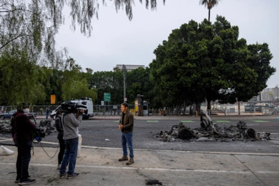 انجمن مطبوعات لسآنجلس میگوید از آغاز درگیریها در آخر هفته تاکنون، دستکم ۳۰ مورد خشونت پلیس علیه خبرنگاران ثبت شده است. مواردی که علاوه بر ضربوشتم، بازرسی اجباری تجهیزات و کیفهای خبری بدون رضایت را نیز در بر میگیرد.