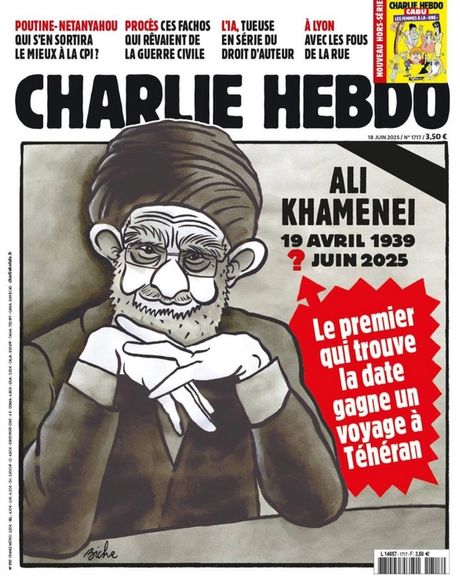نشریه شارلی ابدو در شماره جدید خود طرحی از علی خامنهای، رهبر جمهوری اسلامی، را در صفحه اول منتشر کرد.