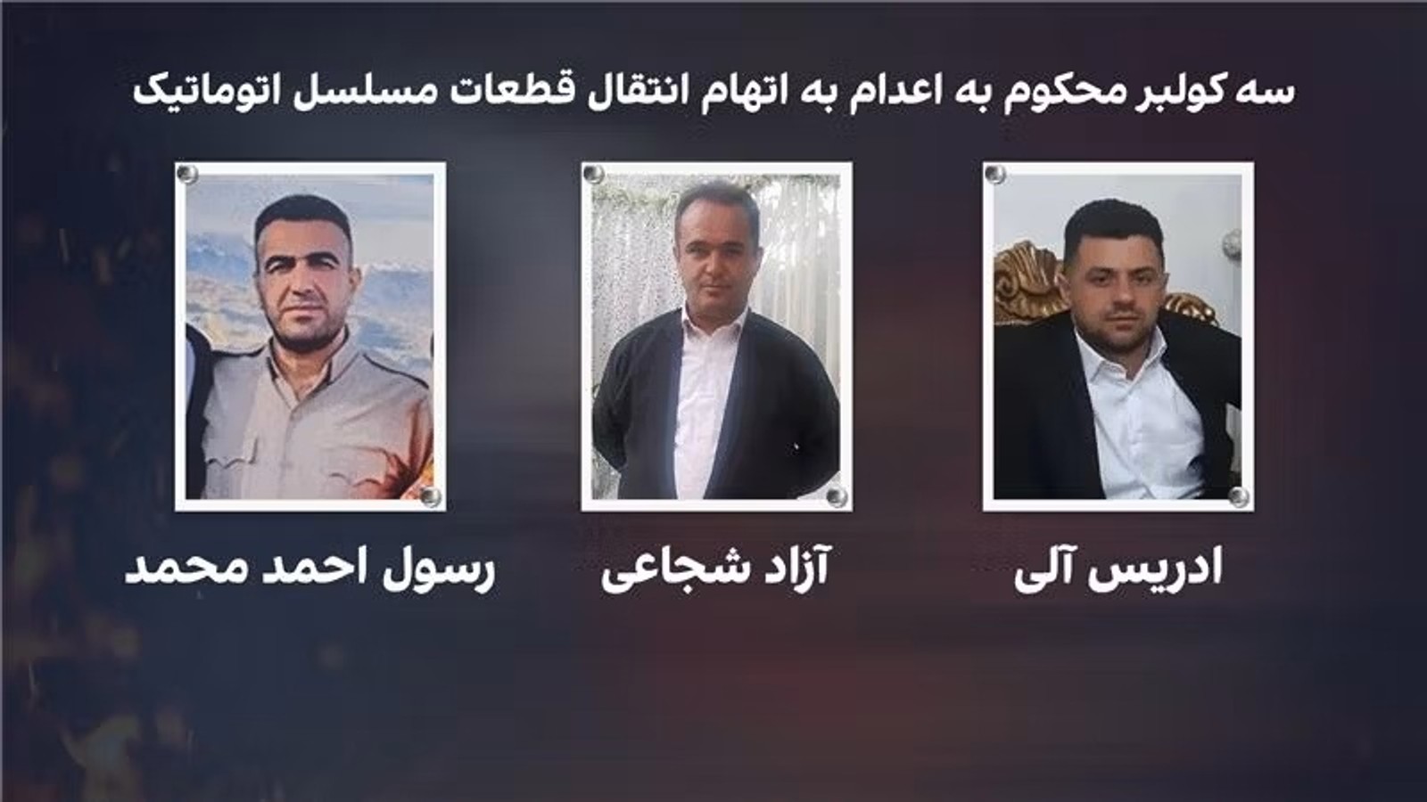 رسانه‌های حکومت از اجرای حکم اعدام ادریس آلی، آزاد شجاعی و رسول احمد محمد، کولبرانی که به کمک در انتقال تجهیزات و سلاح مورد استفاده در کشتن محسن فخری‌زاده متهم شده بودند، خبر دادند.