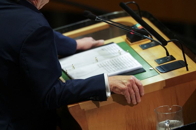 او در سخنرانی خود در مجمع عمومی سازمان ملل متحد گفت: «بهجای تسلیم شدن در برابر حماس، کسانی که خواهان صلح هستند باید با یک پیام متحد شوند: گروگانها را همین حالا آزاد کنید.»