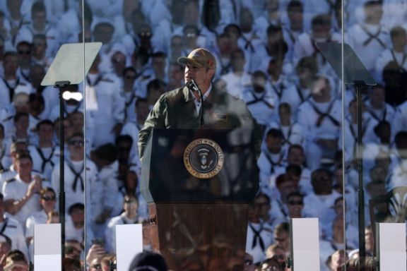 ترامپ هم که پس از او به صحنه آمد، بر قدرت و استقامت ارتش آمریکا، بهویژه نیروی دریایی این کشور تاکید کرد و گفت: «به محض پدیدار شدن یک رزمناو آمریکایی در افق، هر دشمن و دیکتاتوری در این سیاره میداند که انتخابی ساده پیش رو دارد: یا آمریکا را در صلح بگذارد یا در خشم و آتشی بیسابقه نابود شود.»