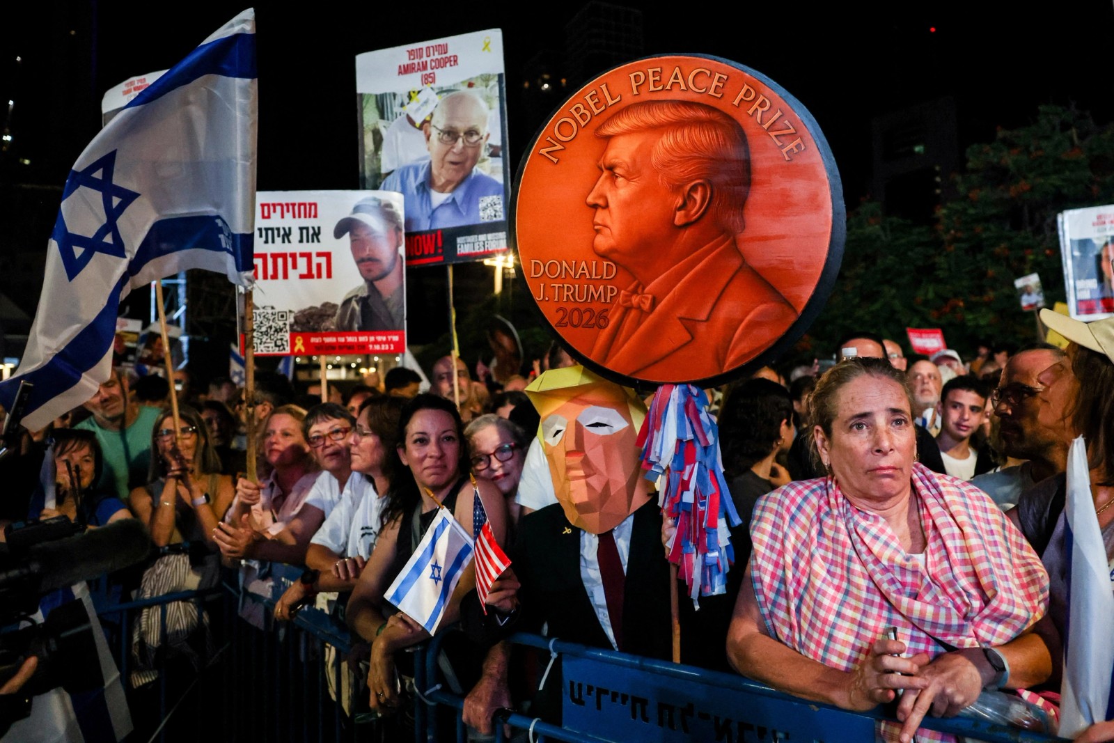 معترضان در طول سخنرانی ویتکاف در تلآویو علیه نتانیاهو شعار دادند.