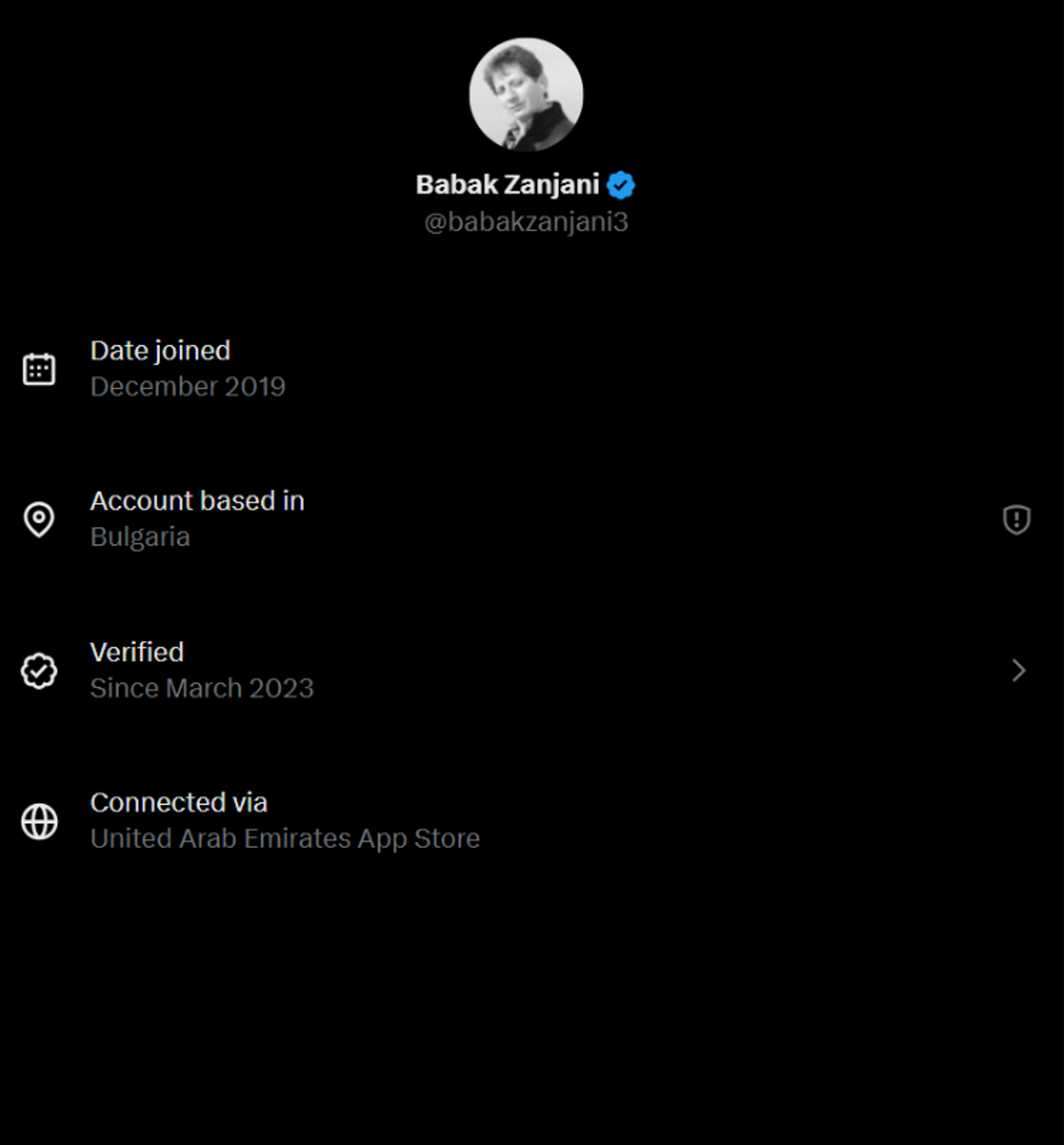 موقعیت کاربری حساب بابک زنجانی، که با اتهامات اقتصادی در ایران محکوم شد و سالها زندانی بود نیز بلغارستان ذکر شده است.