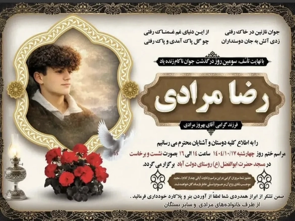 یک منبع نزدیک به خانواده رضا مرادی، از جانباختگان اعتراضات ازنا در استان لرستان به ایراناینترنشنال گفت که پیکر این جانباخته صبح سهشنبه ۱۶ دی در روستای دولتآباد شهر ازنا به خاک سپرده شد.