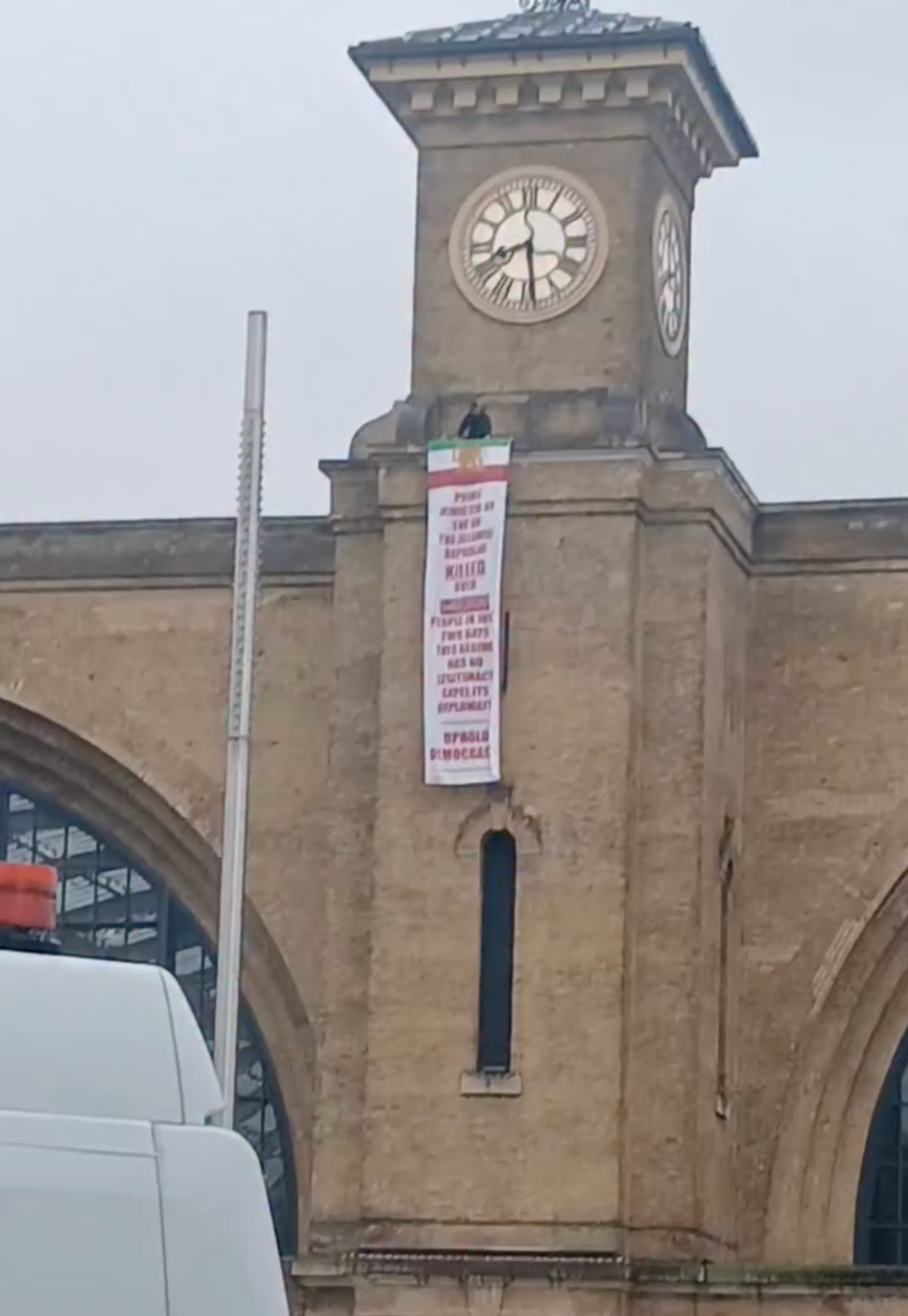 برافراشتن پرچم شیر و خورشید بر فراز ایستگاه متروی کینزکراس در لندن