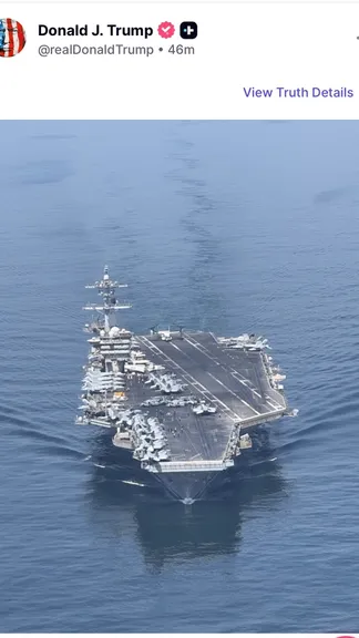 دونالد ترامپ، رییسجمهوری ایالات متحده، عصر جمعه ۲۴ بهمن، ساعاتی پس از اینکه بار دیگر جمهوری اسلامی را تهدید کرد که در صورت توافق نکردن تبعات سنگینی در انتظارشان است، تصویری از بزرگترین ناو هواپیمابر آمریکا را در حساب تروث سوشال خود بدون هیچ توضیحی منتشر کرد.
