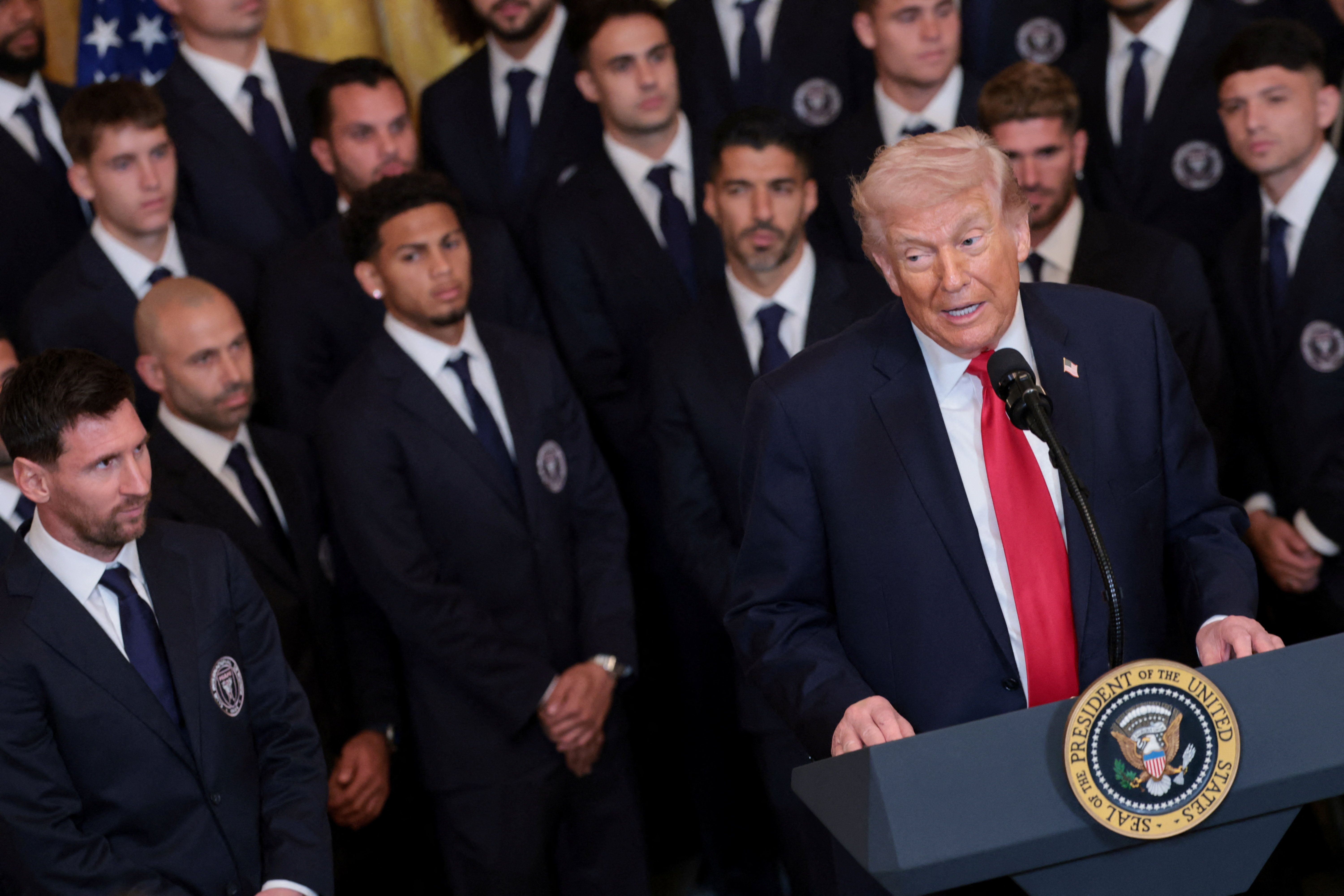 دونالد ترامپ، رییس جمهوری آمریکا در سخنانی در حاشیه مراسم دیدار با اعضای تیم میامی سیاف در کاخ سفید خطاب به نیروهای سپاه پاسداران و ارتش گفت که اگر سلاح خود را زمین نگذارند، کشته خواهند شد.