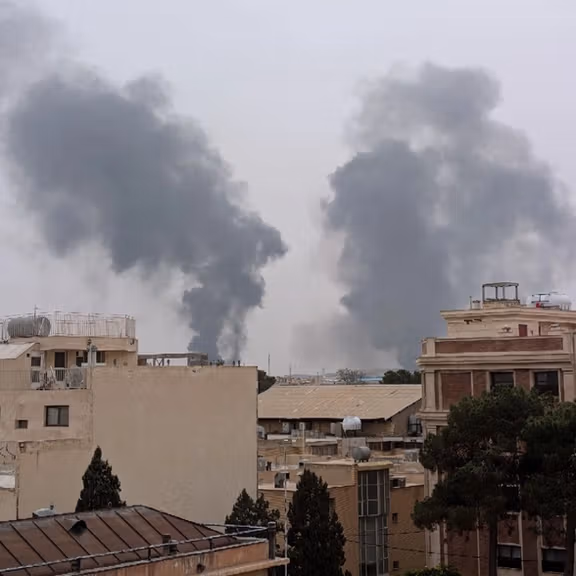 تصویری که به ایراناینترنشنال رسیده، دود ناشی از انفجارهای مهیب پس از حمله هوایی به منطقه هوانیروز اصفهان، در صبح یکشنبه را نشان میدهد.