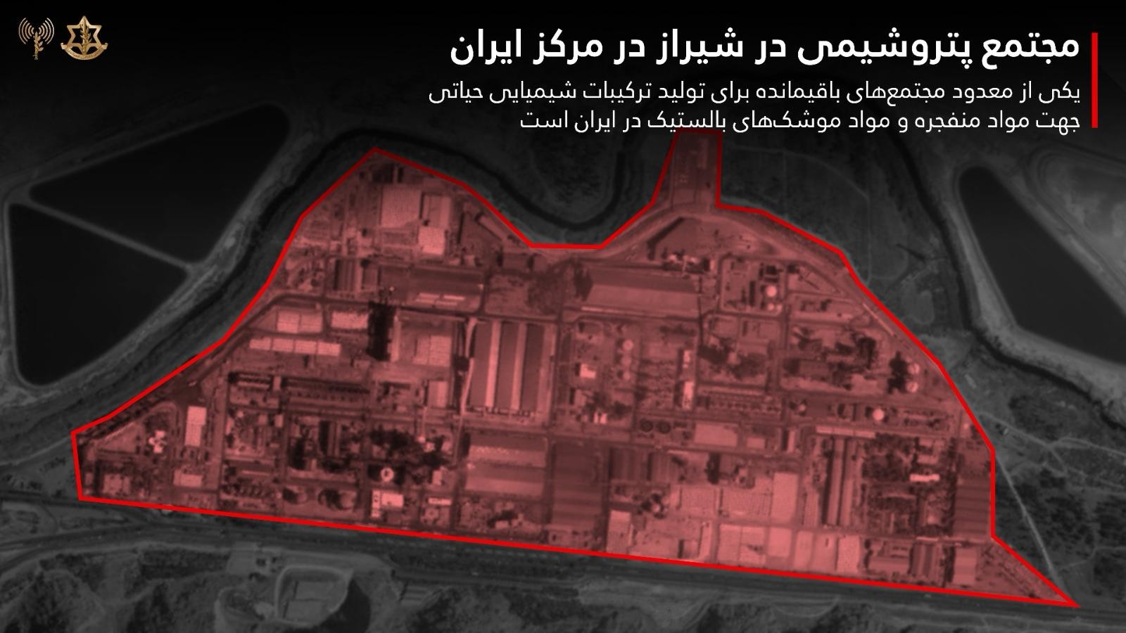 ارتش اسرائیل در بیانیهای با اشاره به حمله به یک مجتمع پتروشیمی در شیراز اعلام کرد این تاسیسات «یکی از معدود مراکز باقیمانده برای تولید اجزای شیمیایی حیاتی مورد استفاده در مواد منفجره و موشکهای بالستیک در ایران» به شمار میرفت.