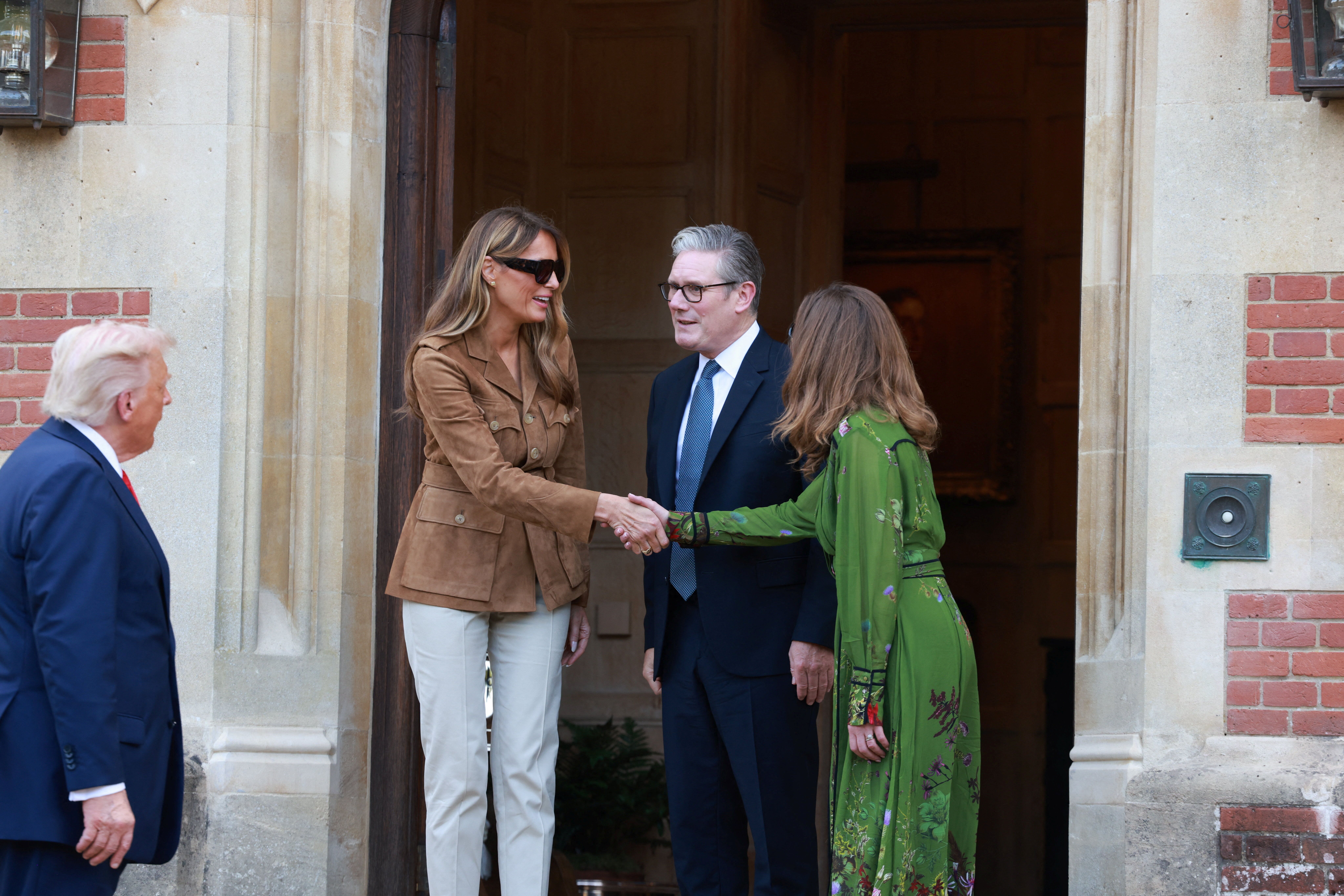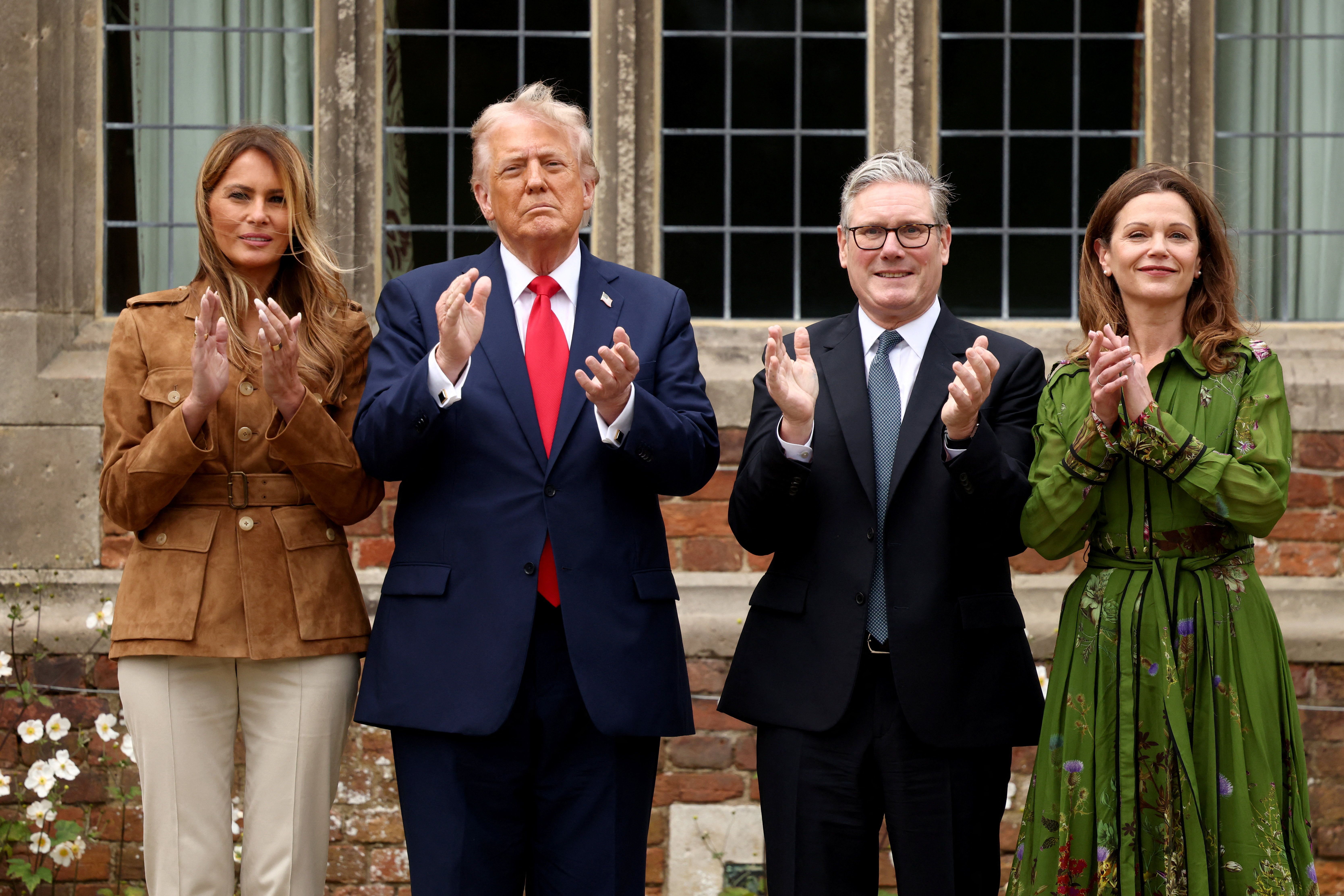 در حالی که ترامپ و همسرش و استارمر در در ورودی خانه رسمی نخستوزیر بریتانیا در حومه شمالی لندن، ایستاده بودند، نوازندگان اسکاتلندی قطعه «اسکاتلند شجاع» را نواختند.